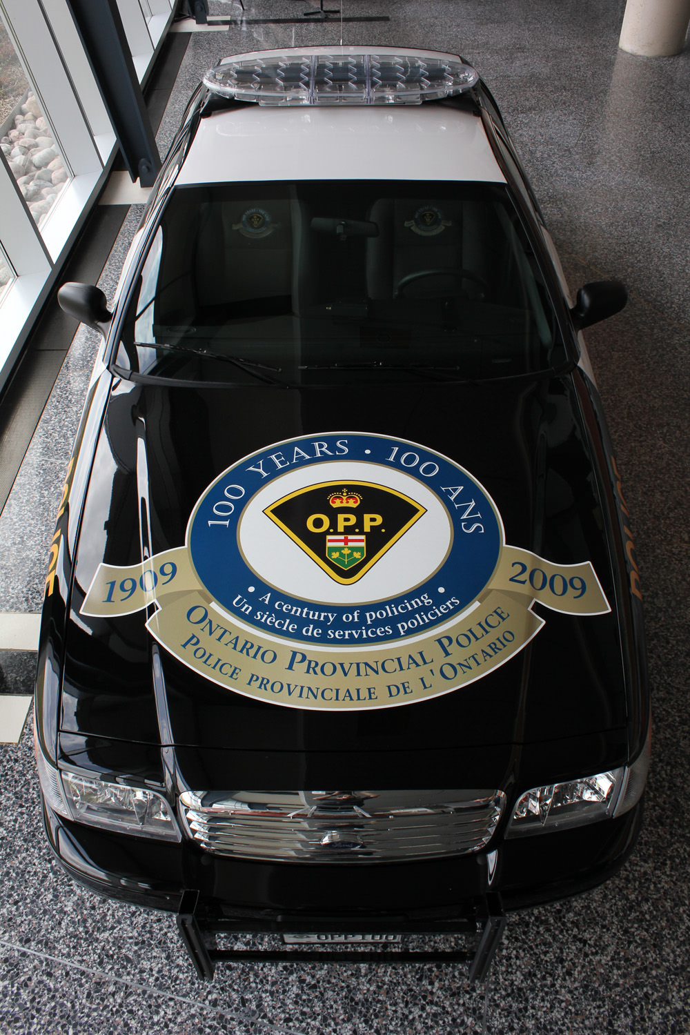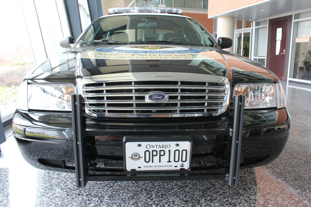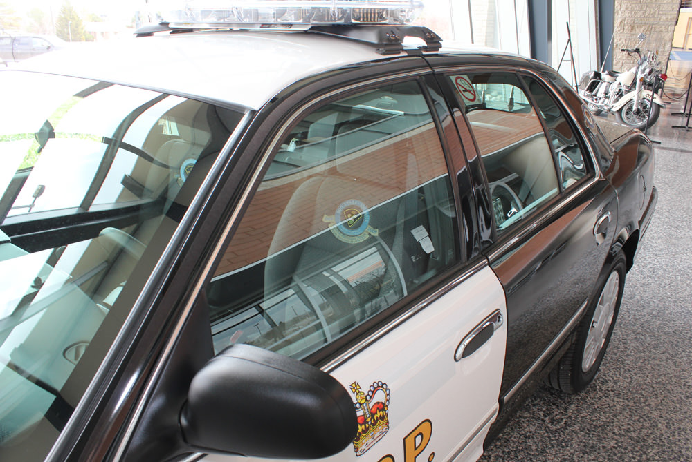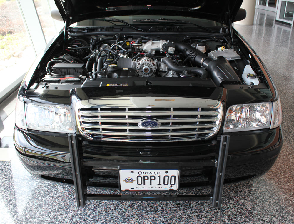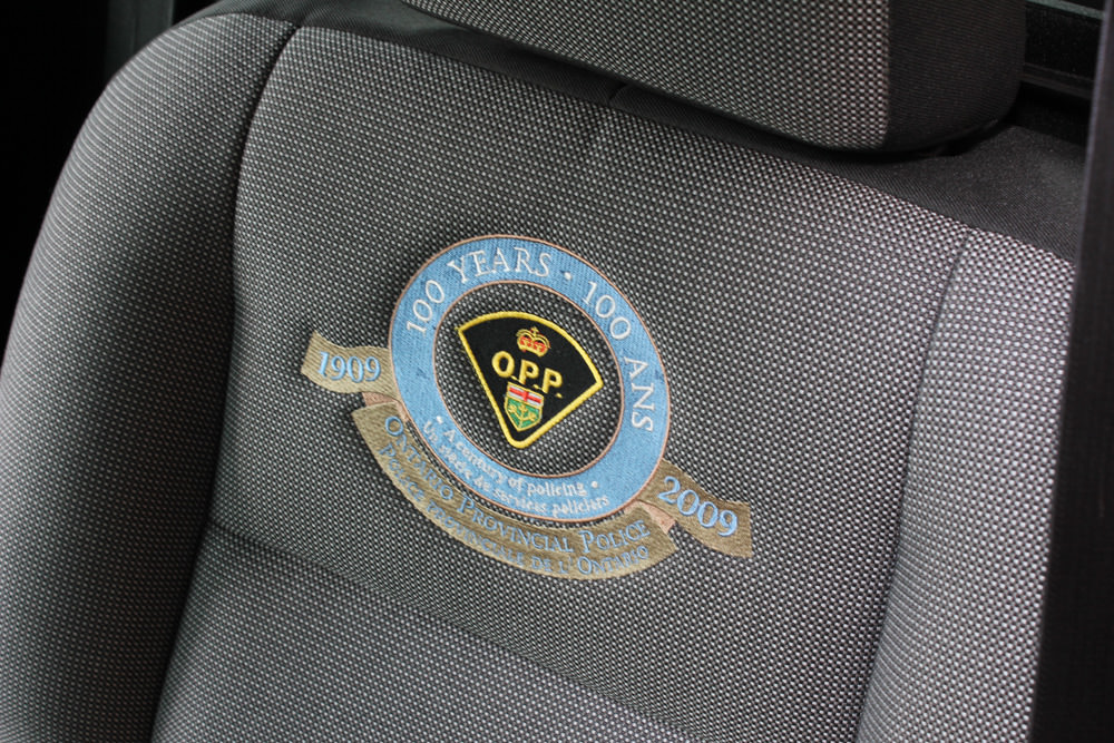 One of six specially equipped models with commemorative embroidered seats and special hood decal, this particular 2009 cruiser was assigned to General Headquarters to travel the province in celebration of the OPP's 100th Anniversary.