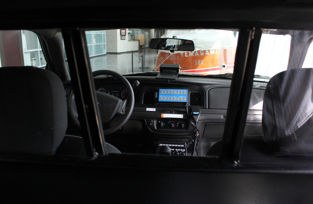 This Crown Victoria Police Interceptor provides a mix of qualities such as handling, performance and value that make it particularly suitable for police work. It is outfitted with Federal Signal's Arjent light bar, which has powerful LED and halogen light assemblies. Each cruiser put into use is custom outfitted to OPP specifications. All light systems, internal cages, communications equipment, decals and safety gear are added to the vehicles when they arrive at GHQ. OPP Fleet Services staff can process approximately 1,000 vehicles (cruisers, SUV's and other specialty cars or trucks) in an average year.