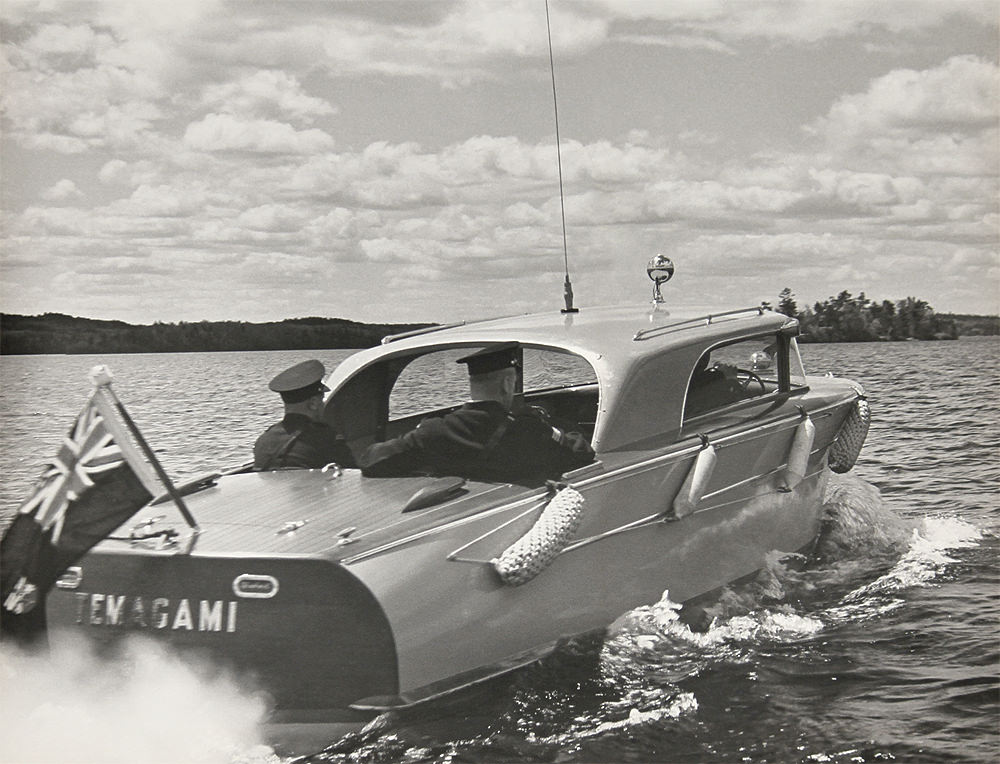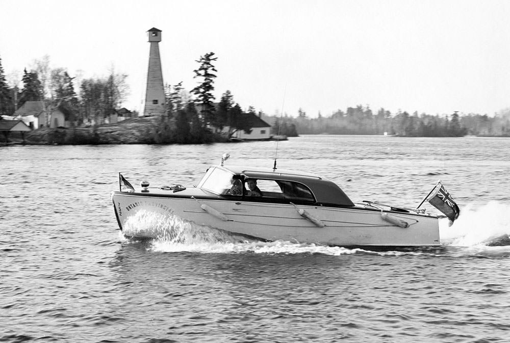Initially, OPP officers relied on whatever transportation was locally available for rent or loan when they needed to navigate areas only accessible by water; and regular pro-active patrols of local lakes or rivers was unheard of. This changed in 1949 when the government commissioned the construction of two 22 foot mahogany Runabout Deluxe Sedan models from Niagara-on-the-Lake's Shepherd Boats. Sporting the latest and greatest in technology, Temagami and Kenora took to the waters that summer and would have been a welcome sight to stranded boaters and cottagers who needed assistance.